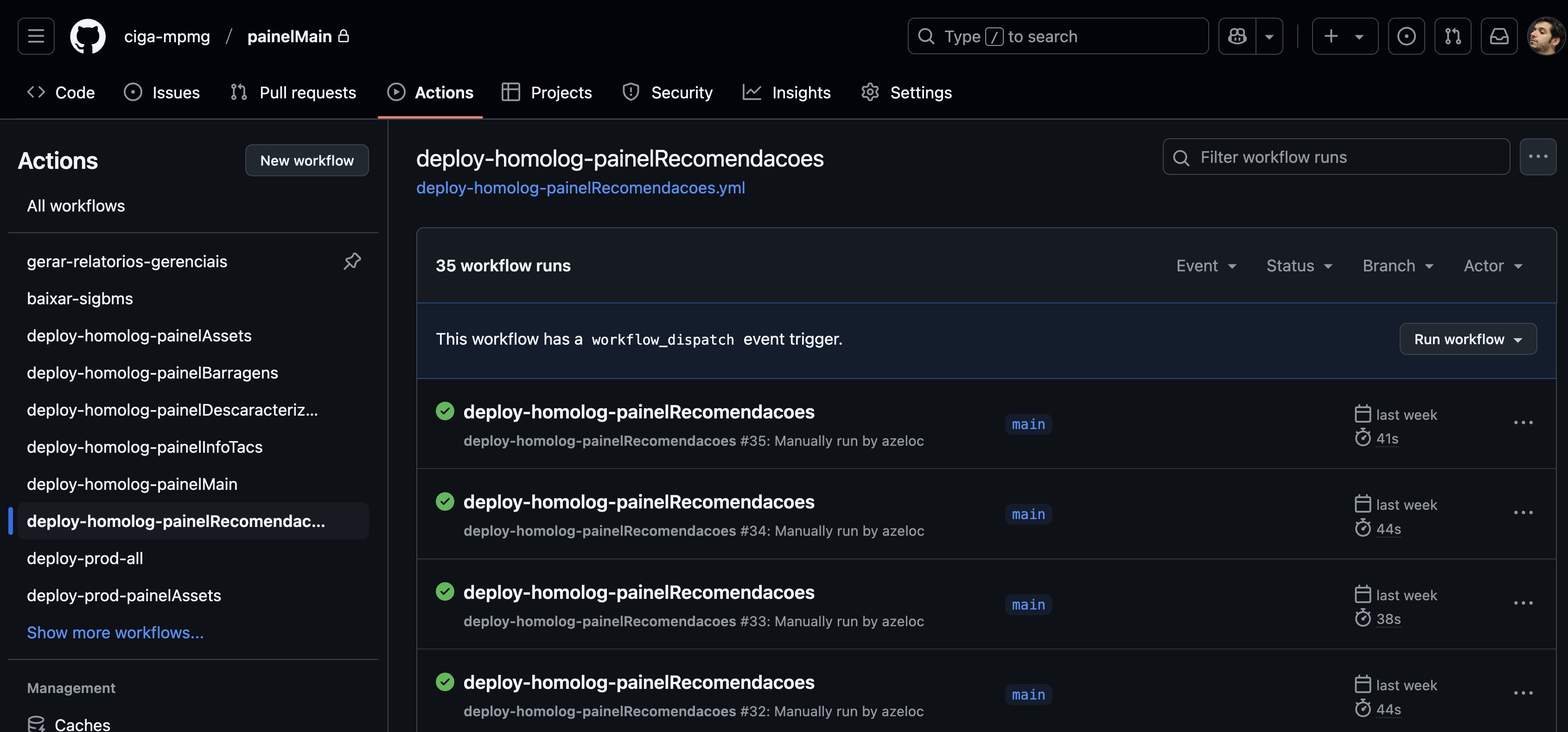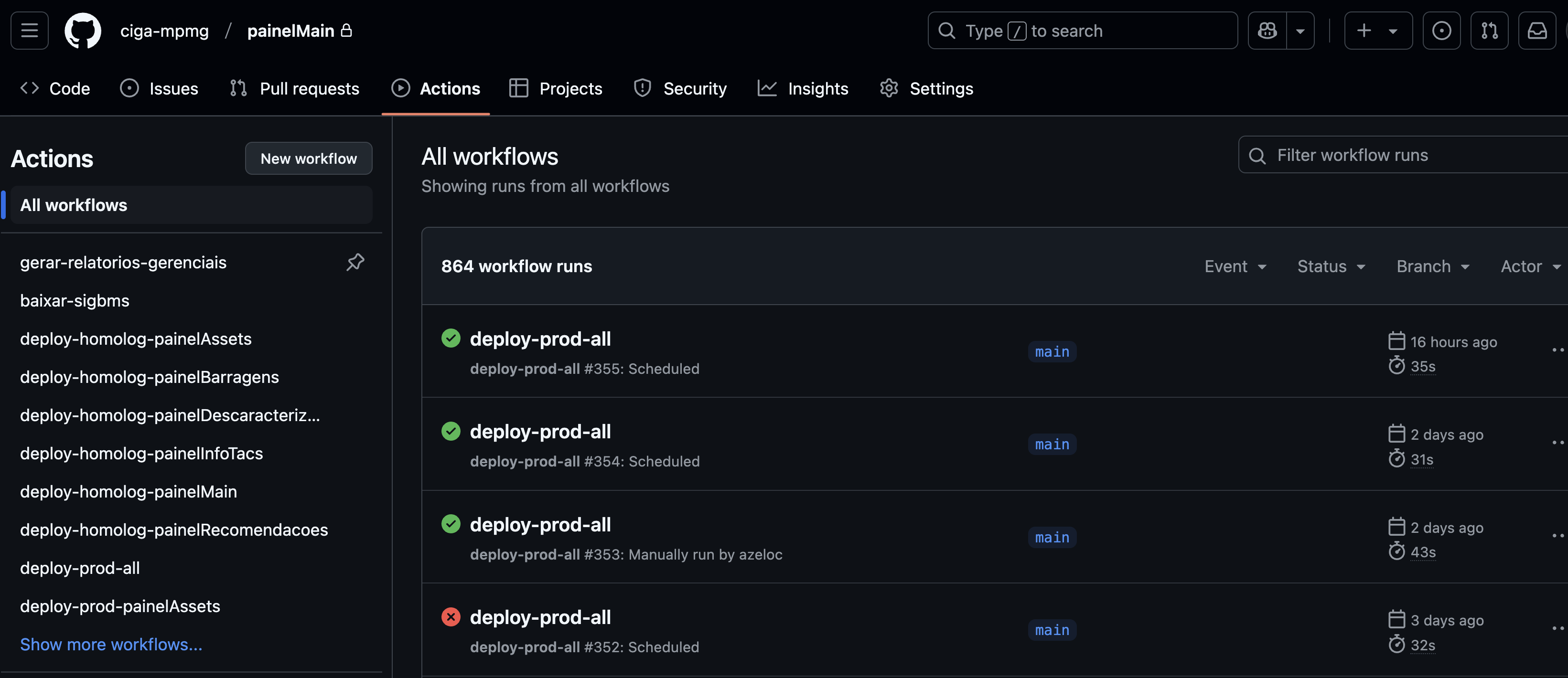 - Repositório onde o workflow é executado: ciga-mpmg/painelMain